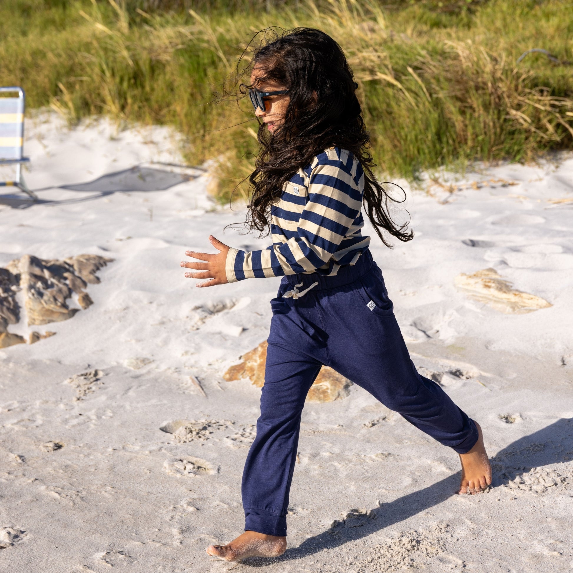Protect your little one’s sensitive skin with our ultra-comfy UV protective longsleeves and jogger pants. Crafted from our signature organic cotton and bamboo fabric blend, these pieces are naturally breathable, hypoallergenic, and gentle on delicate skin. With built-in UPF 50+ sun protection, they effectively block over 98% of harmful UV rays.