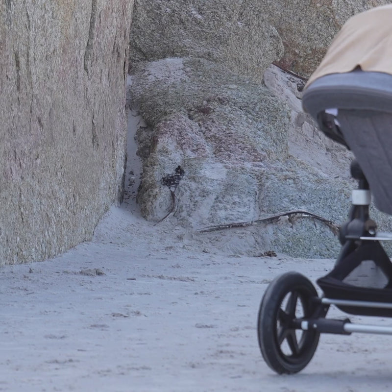- Veilige kinderwagencover: Maak de doek eenvoudig vast aan de duwbeugel van de kinderwagen. De doek sluit niet volledig af, zodat de lucht goed kan circuleren terwijl je kindje toch in de schaduw zit.